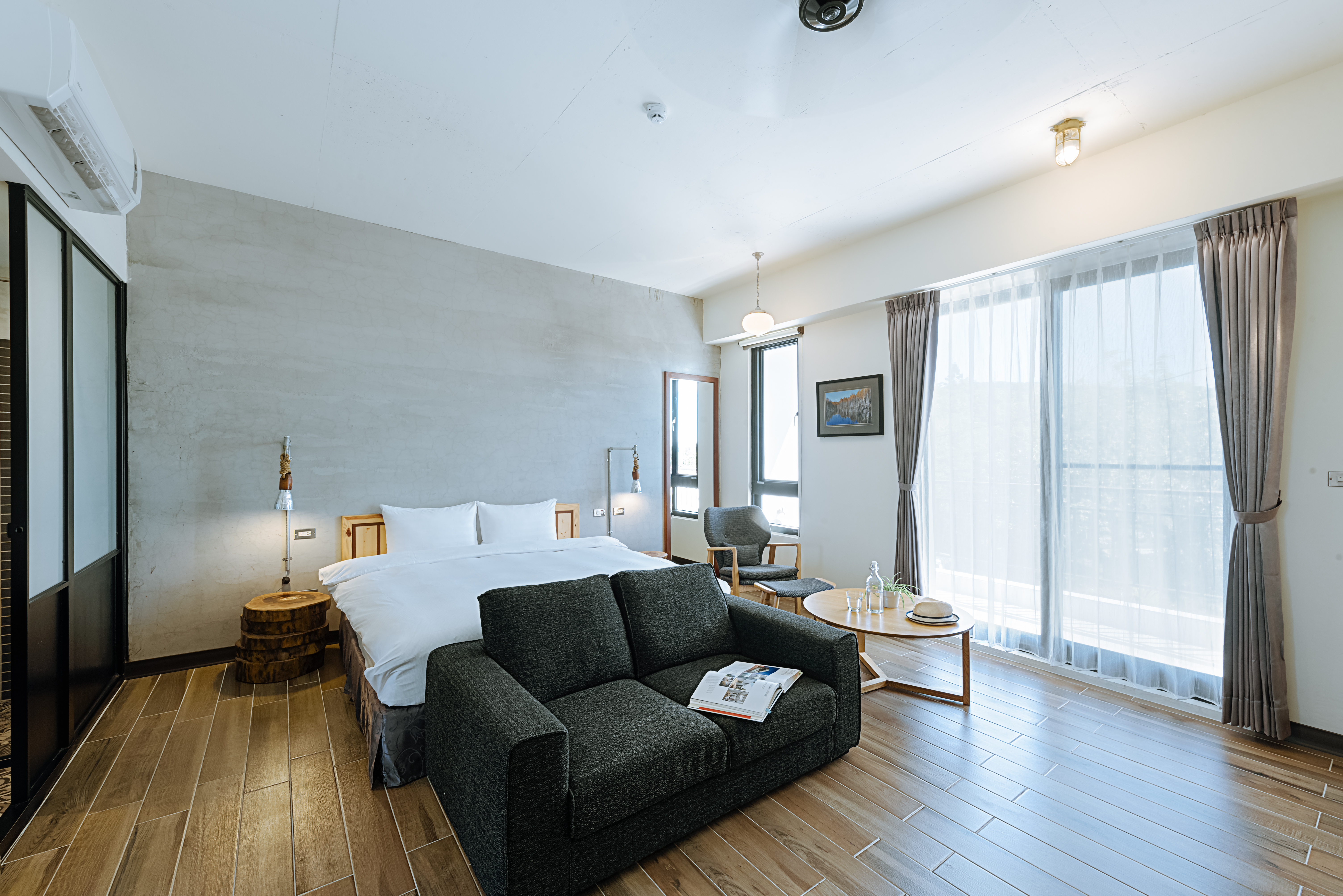 此獨立套房房內配有一張加大雙人床、1 件加大雙人棉被、2 個較硬枕與 2 個較軟枕,最多可入住 2 位旅客。